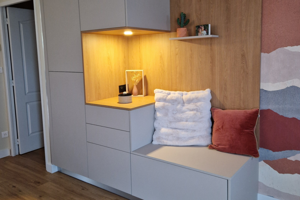 Parce que chaque intérieur possède sa propre identité, nous imaginons des solutions réellement adaptées à vos besoins. Nous concevons et réalisons des aménagements sur-mesure, pensés pour être à la fois fonctionnels, durables et harmonieux. Notre démarche s’inspire des principes de la conception d’espace et de la décoration intérieure afin d’aligner usages, style et confort au quotidien.